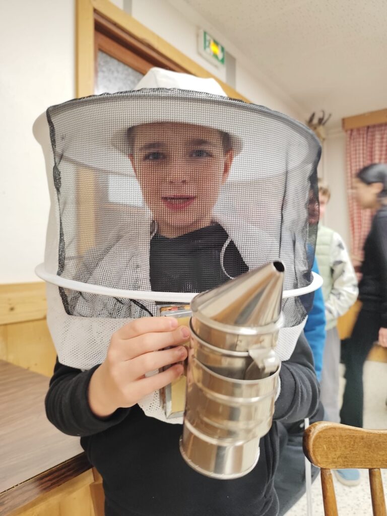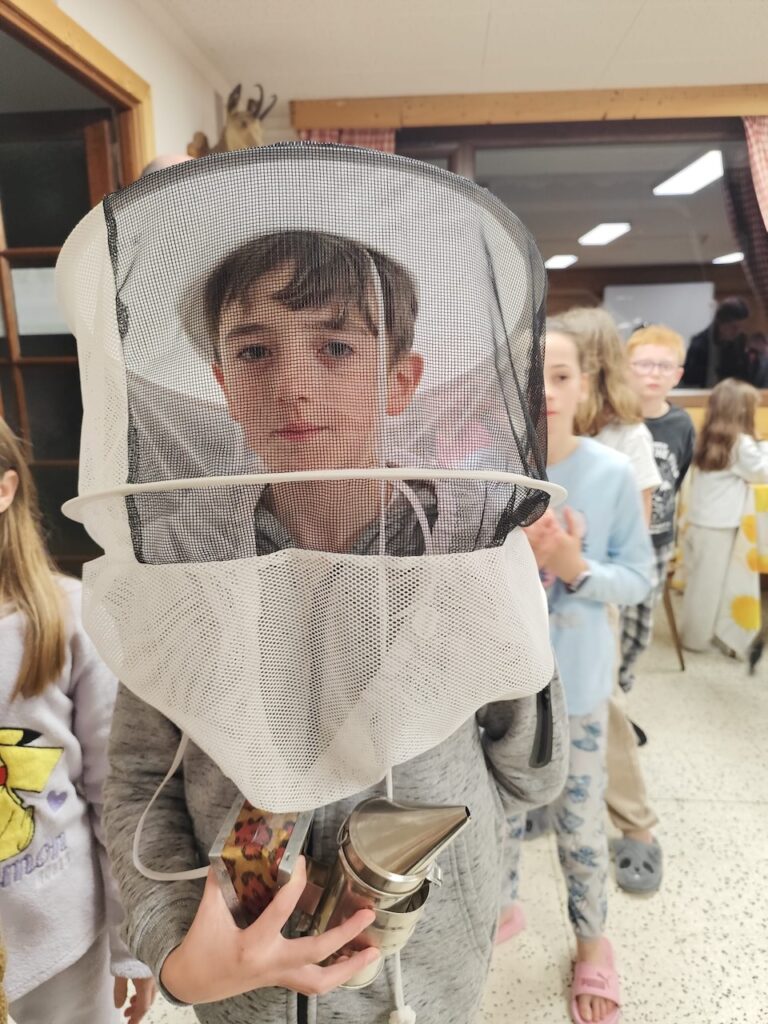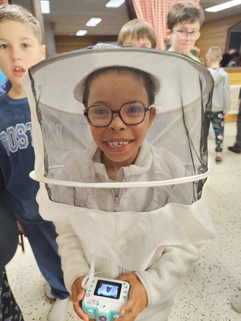 Dans la soirée, les enfants ont découvert l’apiculture. Cela les a beaucoup intéressés, ils ont posé énormément de questions. Ils ont ensuite pu goûter du miel, regarder les différentes abeilles ou bien encore essayer le chapeau de l’apicultrice.
