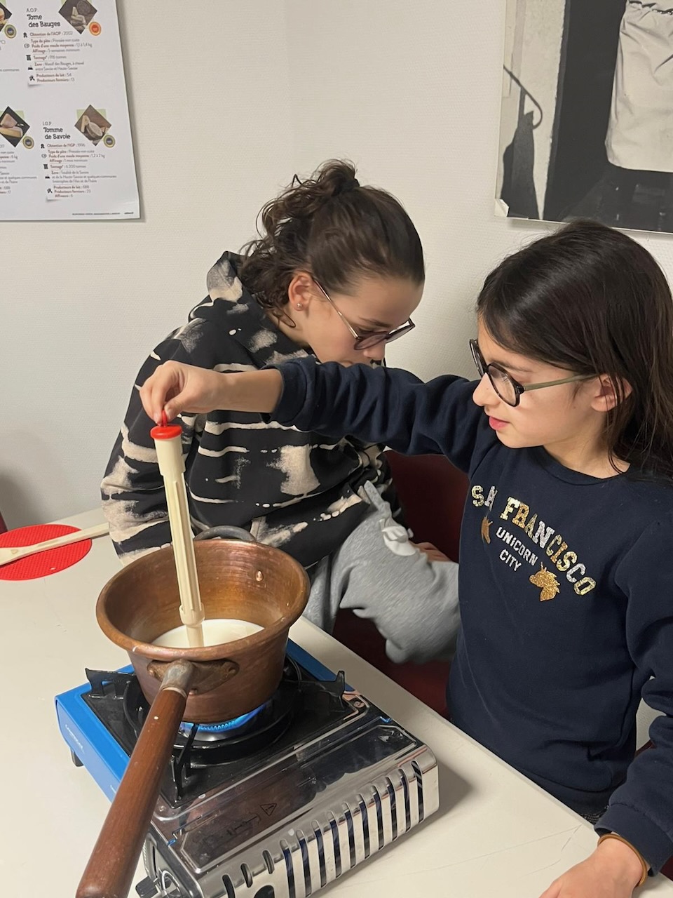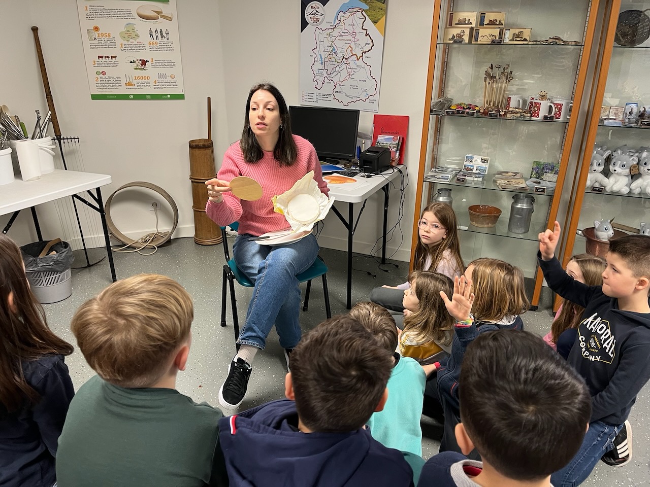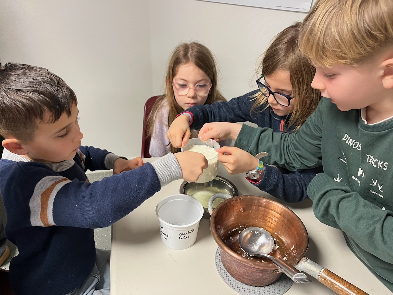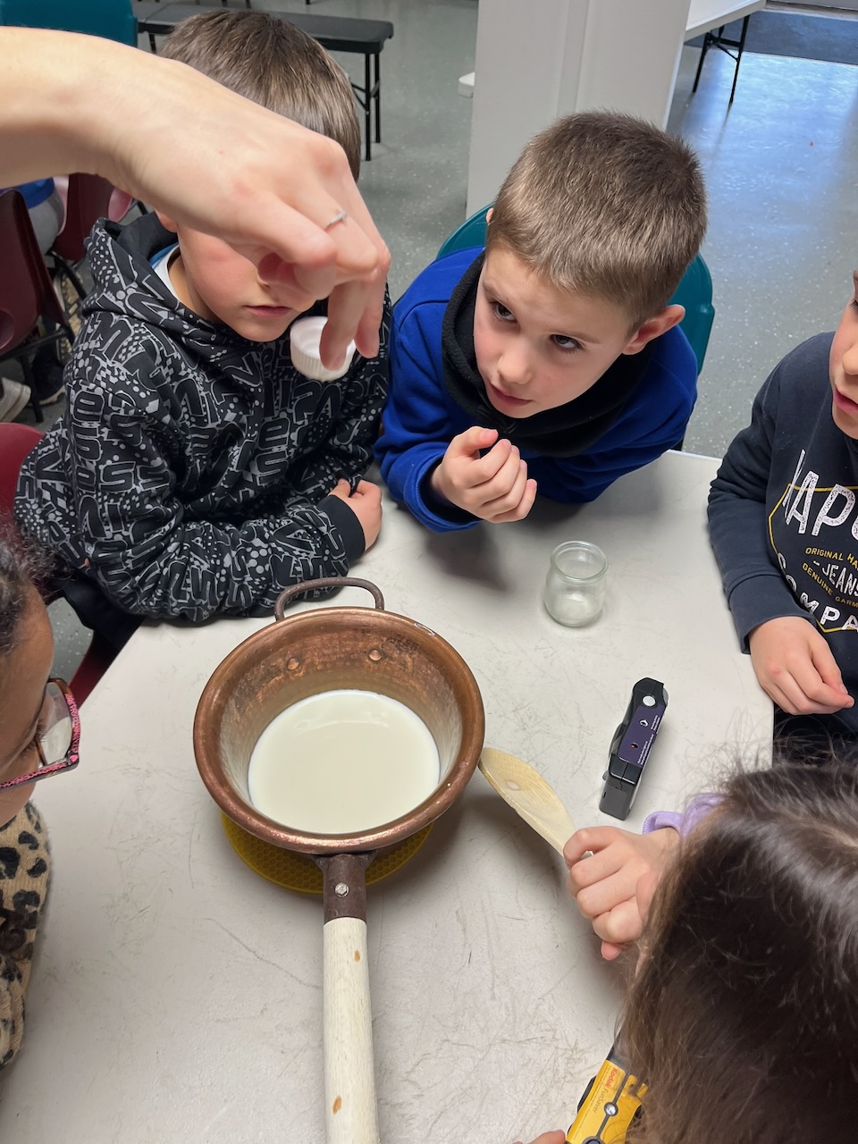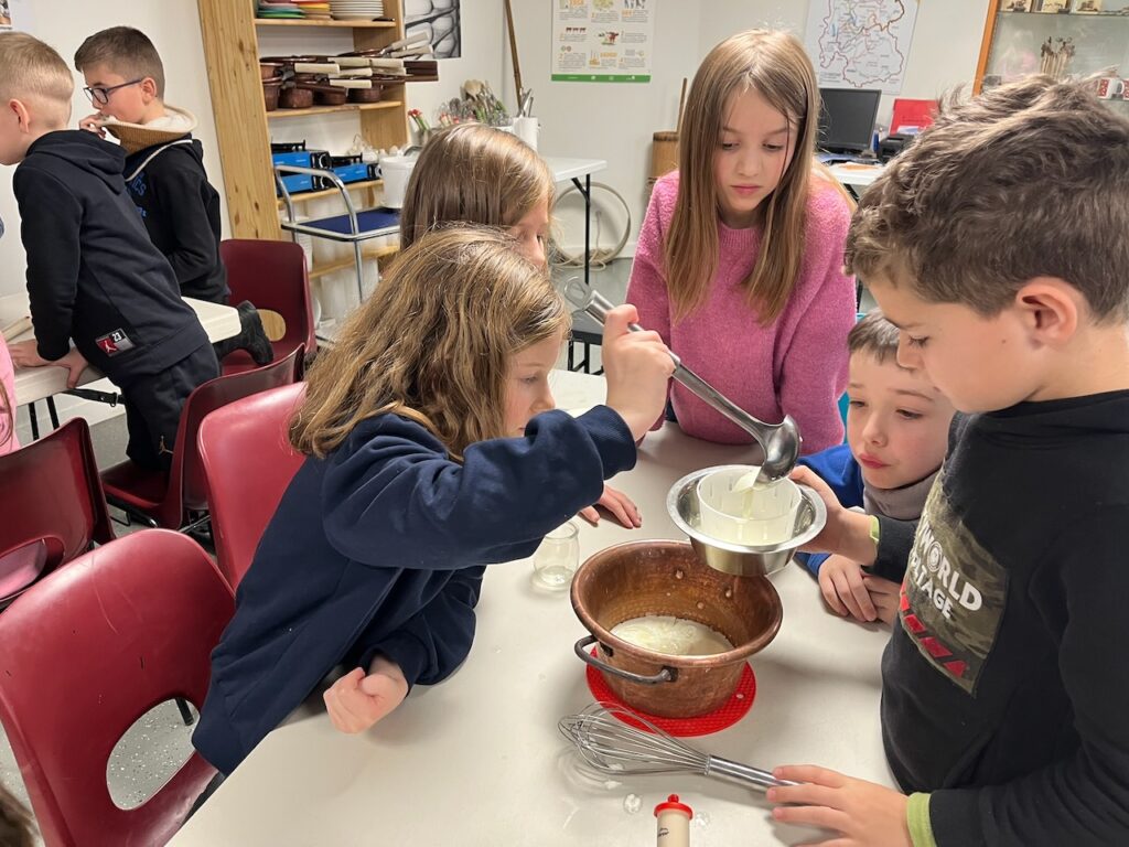 Les enfants ont découvert le chemin du lait, de la vache jusqu’au fromage. Grâce à des explications adaptées à leur âge, ils ont appris d’où vient le lait, comment il est transformé et quels sont les métiers liés à la fabrication du fromage.