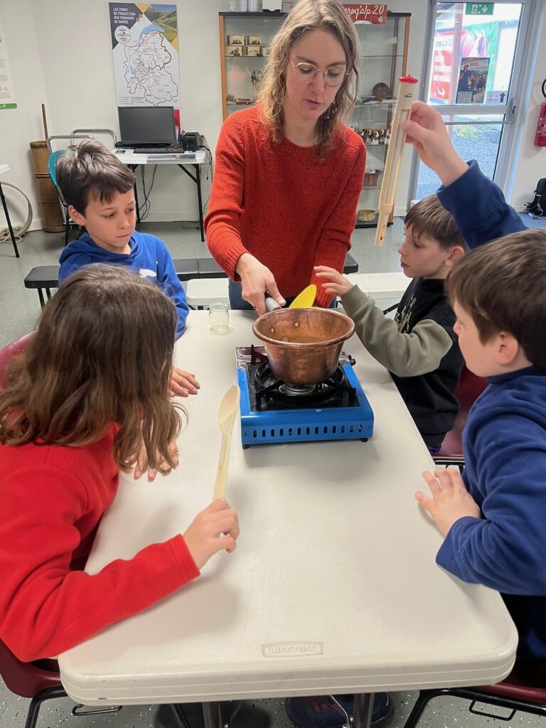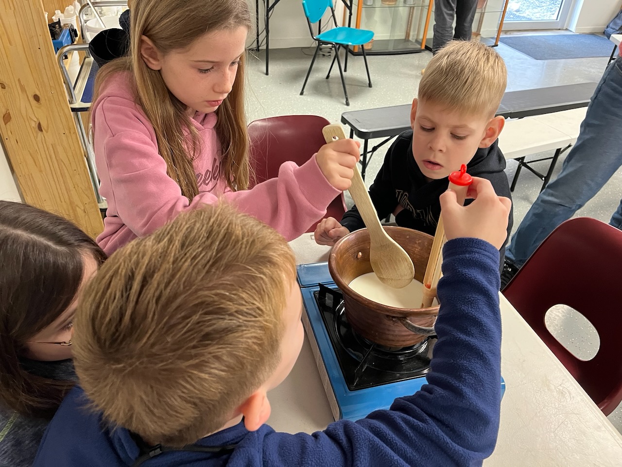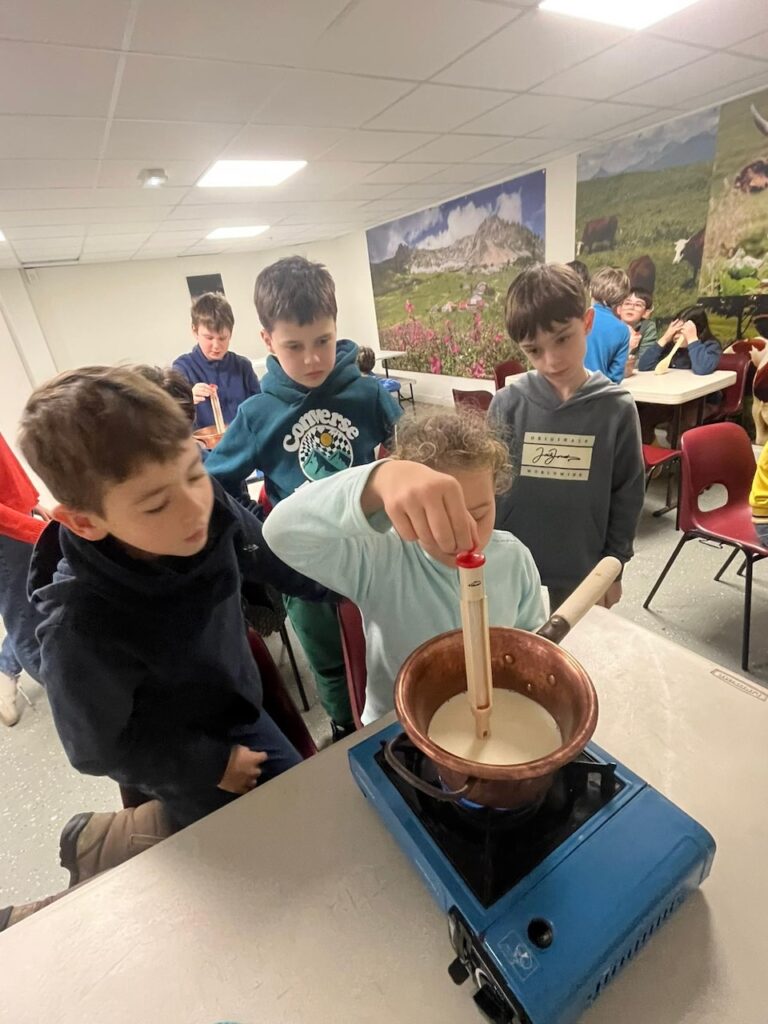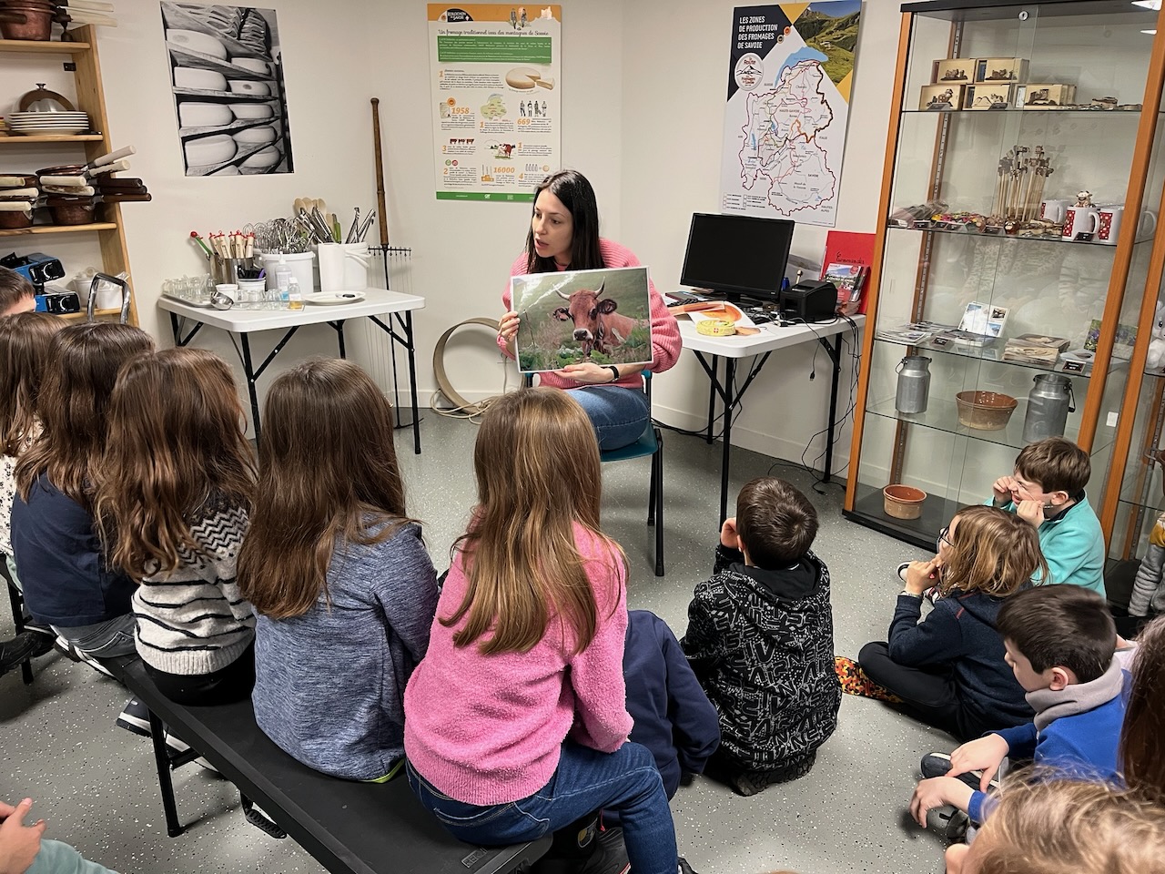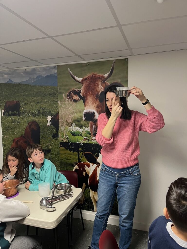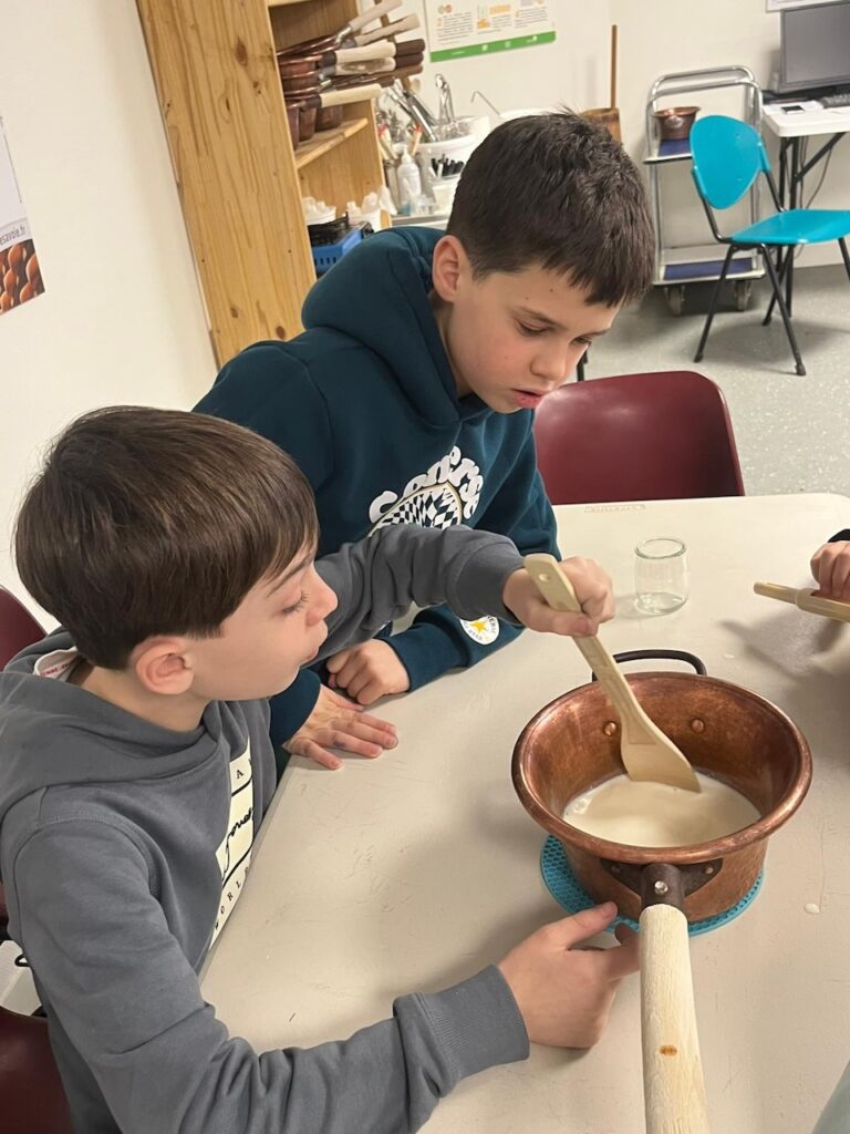Les enfants ont découvert le chemin du lait, de la vache jusqu’au fromage. Grâce à des explications adaptées à leur âge, ils ont appris d’où vient le lait, comment il est transformé et quels sont les métiers liés à la fabrication du fromage.