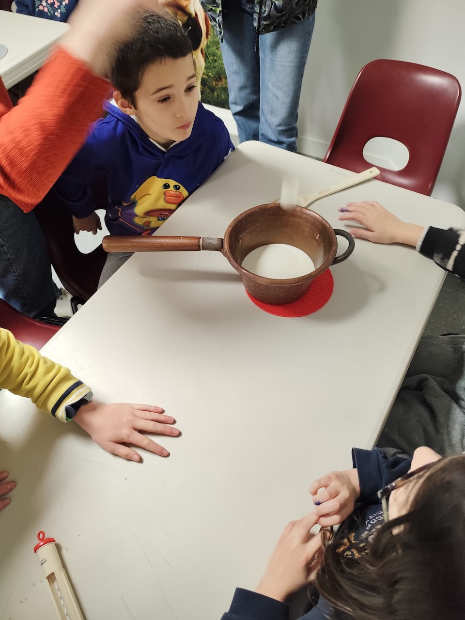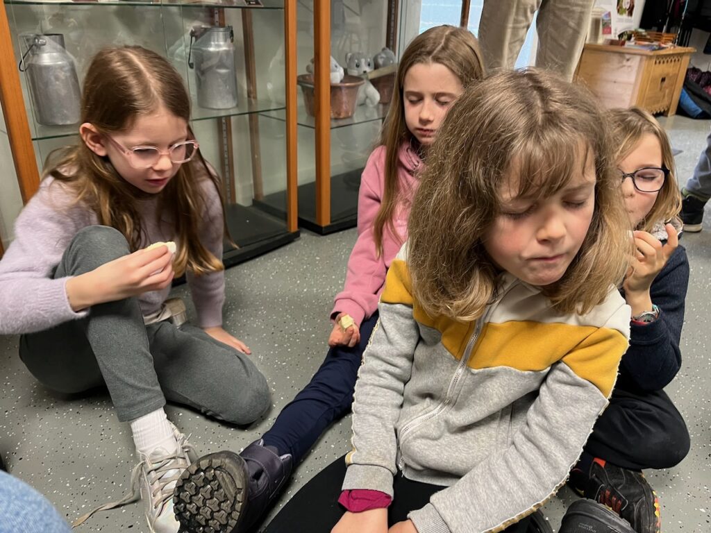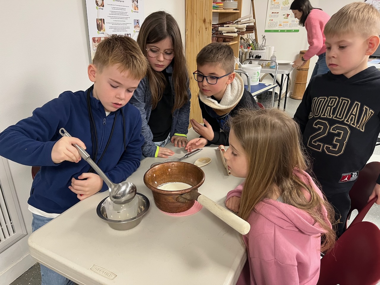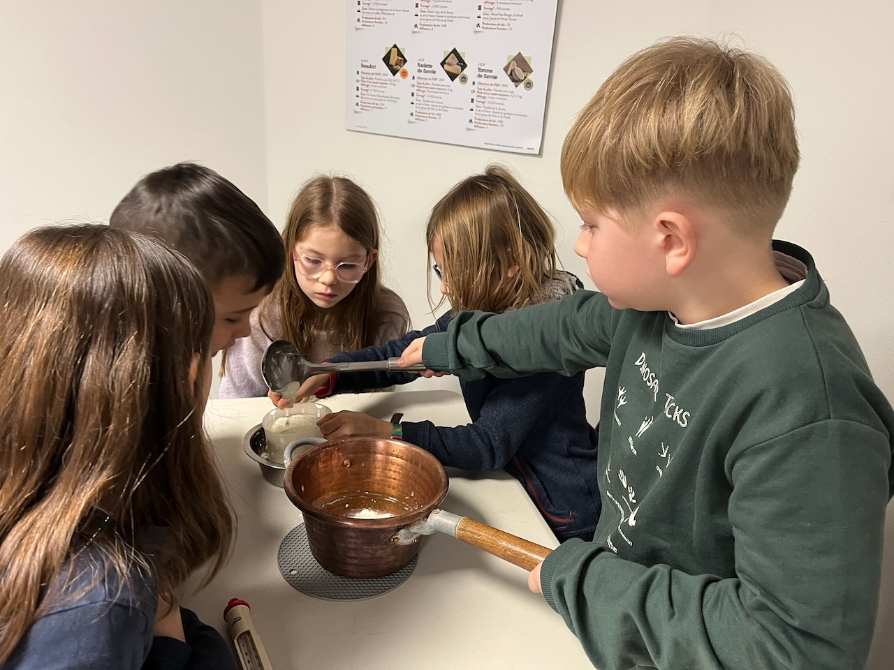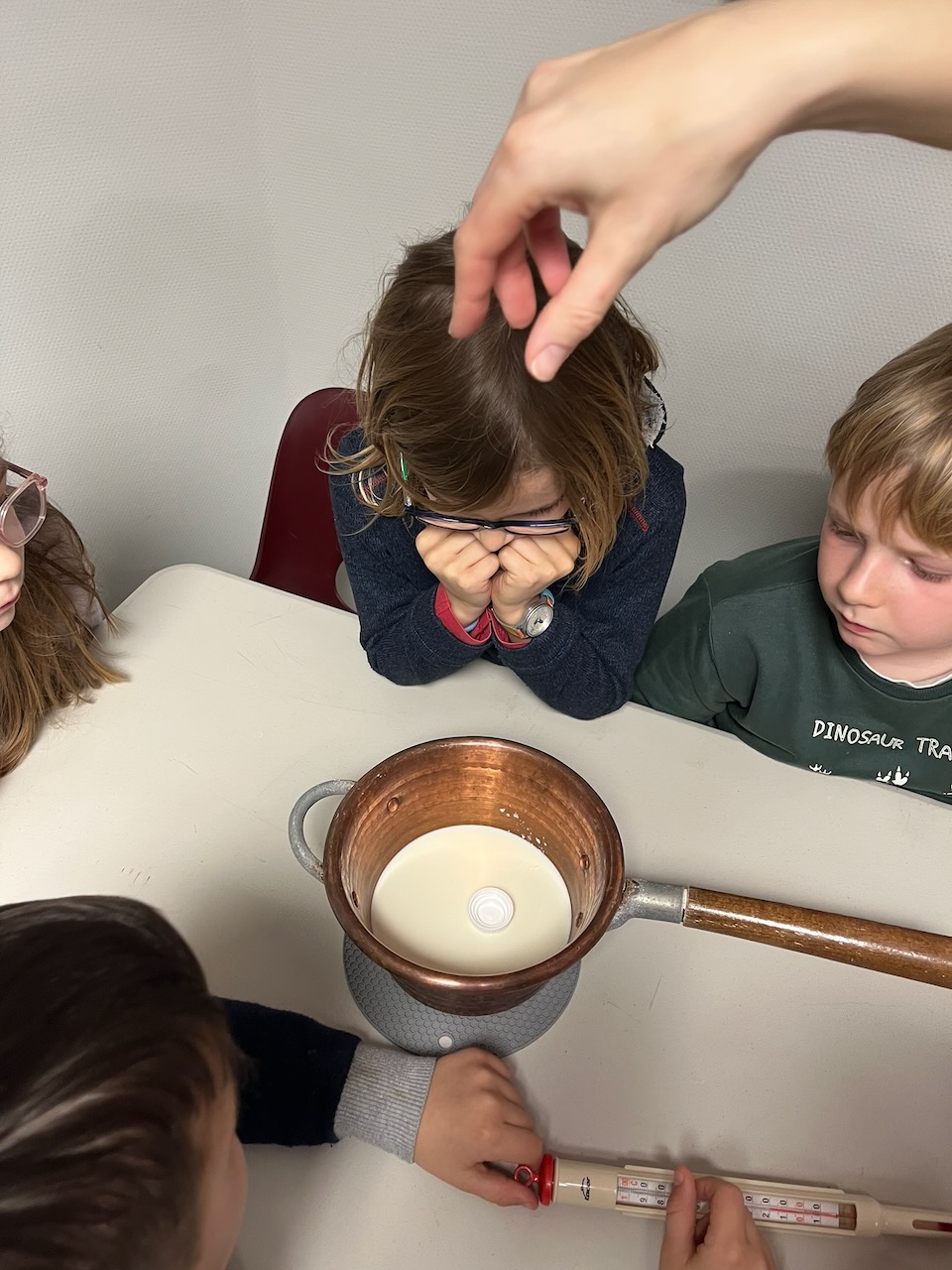 Les enfants ont découvert le chemin du lait, de la vache jusqu’au fromage. Grâce à des explications adaptées à leur âge, ils ont appris d’où vient le lait, comment il est transformé et quels sont les métiers liés à la fabrication du fromage.
