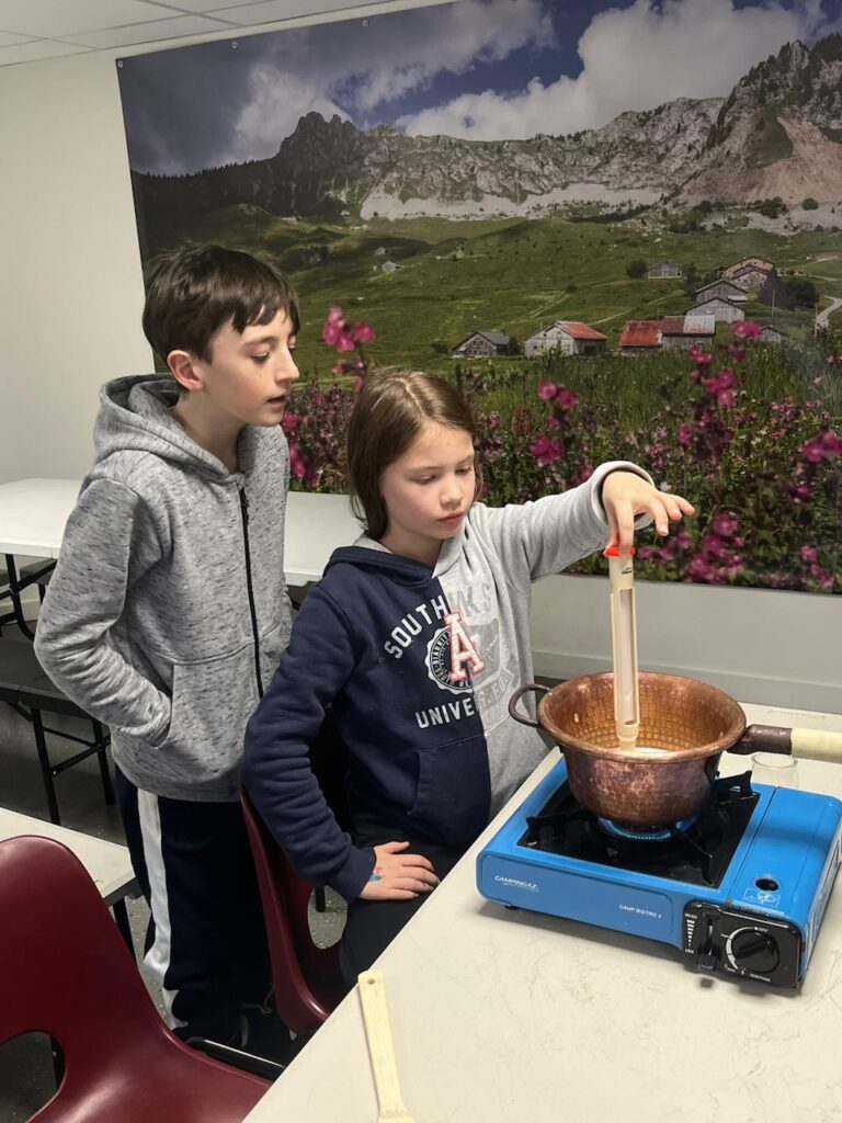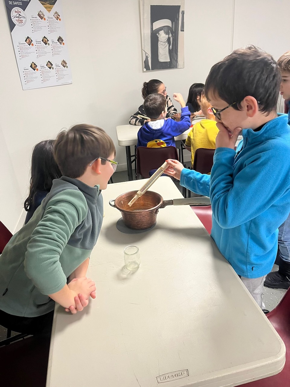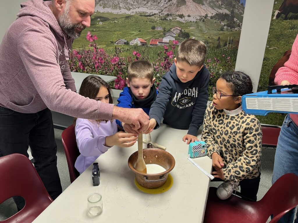 Les élèves ont vécu une expérience aussi gourmande qu’enrichissante lors de leur visite au musée Croq’Alp, à Viuz-en-Sallaz. Au cœur de cette sortie : la fabrication d’une tomme blanche, un fromage emblématique de notre région.