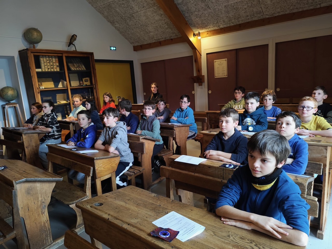 Les élèves ont découvert une salle de classe reconstituée, avec ses pupitres en bois, la blouse et les objets du quotidien utilisés par les écoliers d’autrefois. À travers l’immersion dans une classe d’autrefois, ils ont comparé l’école d’hier et celle d’aujourd’hui : les règles, les fournitures, la place de l’enseignant, mais aussi les punitions et les conditions de travail.