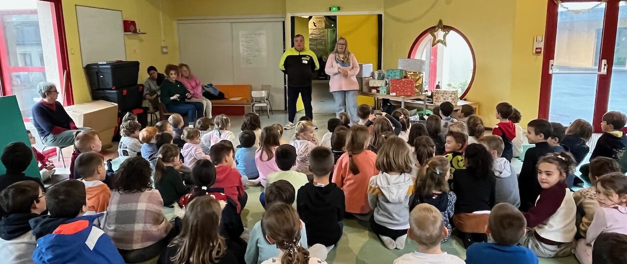 Le père Noël est passé ce matin dans notre classe, nous avons eu des chocolats car nous avons été très sages cette année. Nous étions très contents de le voir. Certains se demandaient à quel endroit était garé son traineau.