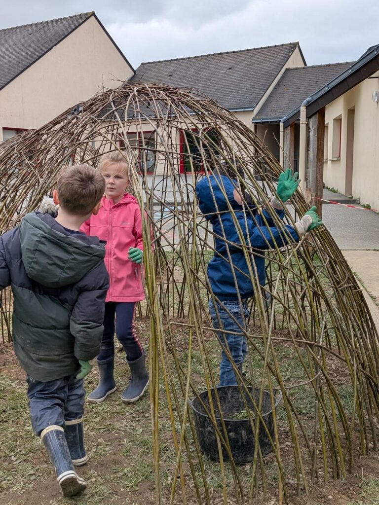 Pendant toute une semaine, les élèves de l’école, de la petite section au CM2, ont participé à un projet aussi original que fédérateur : la construction d’une cabane en osier vivant.