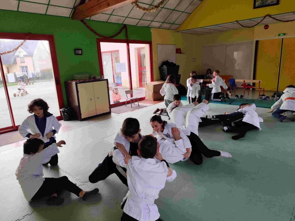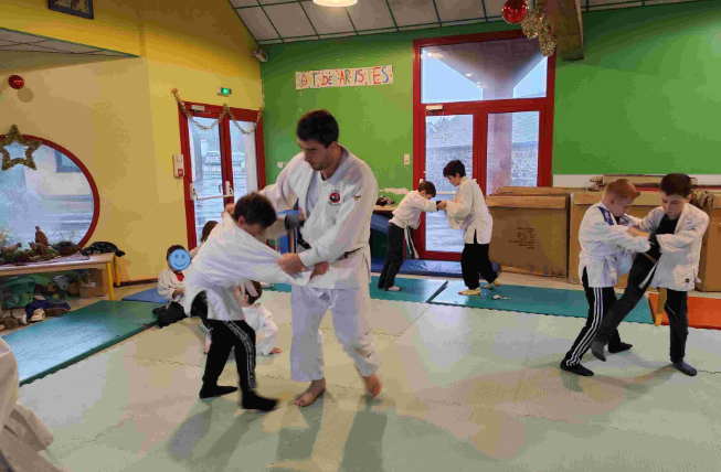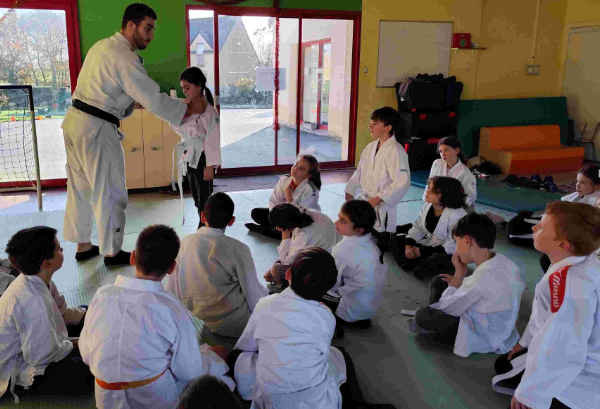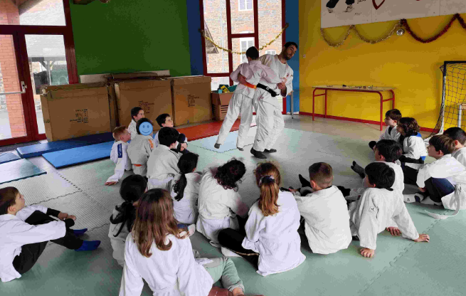 Avec le nouvel entraîneur de judo, Nicolas, les élèves de CM1-CM2 ont bien approfondi leur apprentissage du judo.